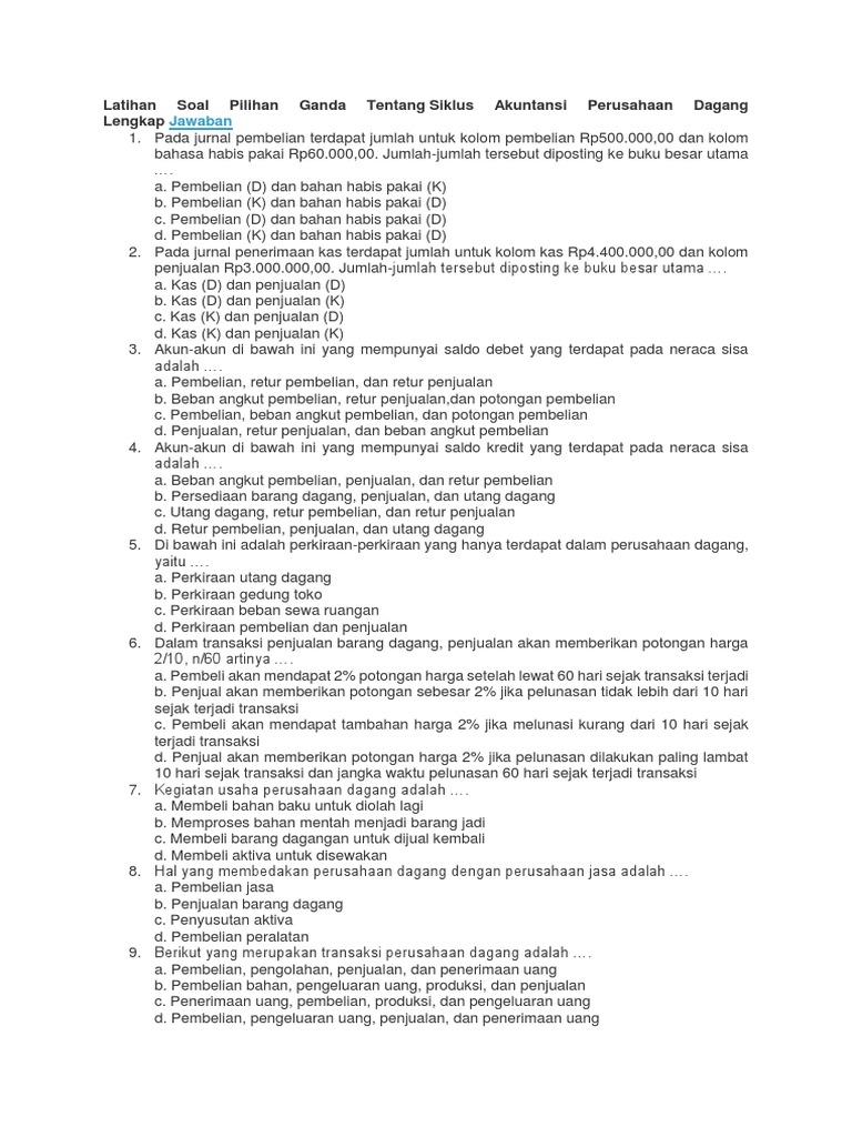 Contoh soal akuntansi dan jawabannya otakminierma contoh soal. 5 poin soal pilihan ganda tentang teks eksplanasi beserta jawabannya tanyakan detil pertanyaan. Komputer akuntansi kelas xi jilid 1. Soal pilihan ganda beserta jawabannya tentang hubungan intrernasional1. Pilihlah lah jawaban a, b, c, d atau e yang tepat sesuai dengan keadaan dalam text yang diberikan di bawah ini.