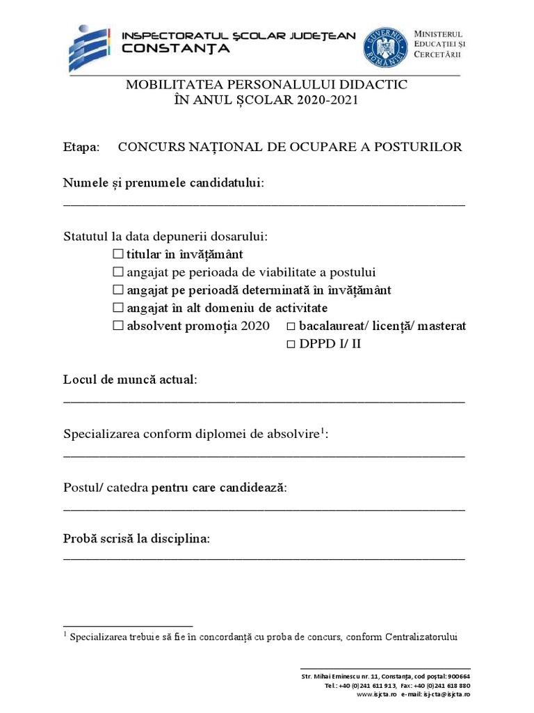 Ministerul educației a publicat fișa de înscriere la concursul din acest an.